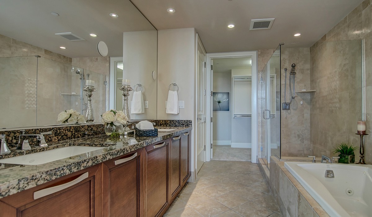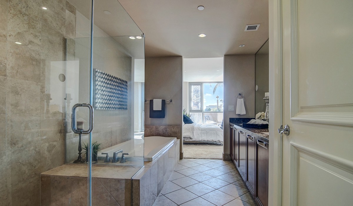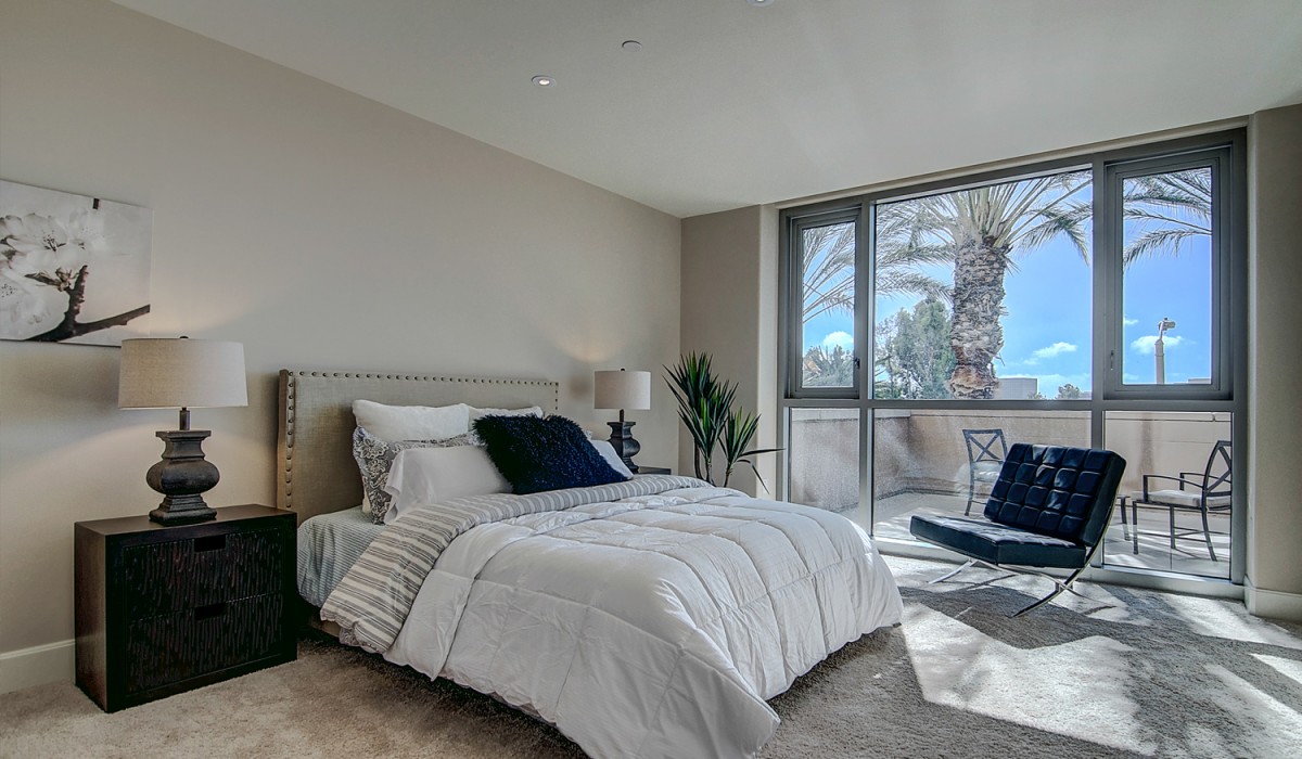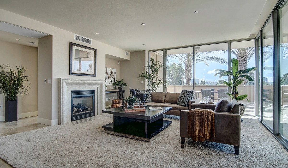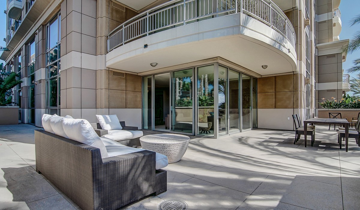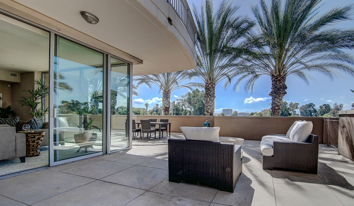 Spectacular Plaza Irvine location with a huge private terrace, and direct access to the sparkling pools, world class fitness center, grilles and more!