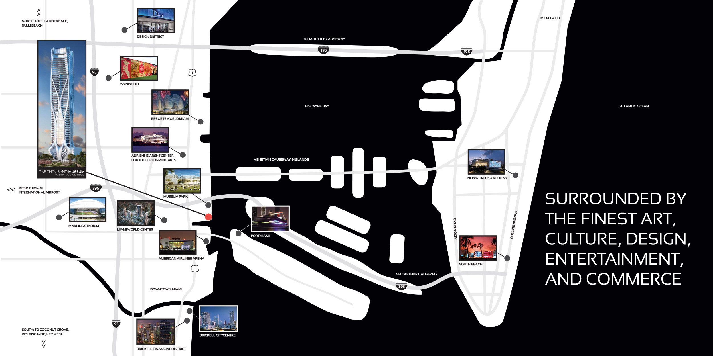 Offers breathtaking views of Biscayne Bay and the Atlantic Ocean from every residence, the top-floor, double height Aquatic center and rooftop Helipad, exclusively for ONE THOUSAND MUSEUM owners, are crowning features on this unparalleled acquisition opportunity commanding significant local and worldwide attention.