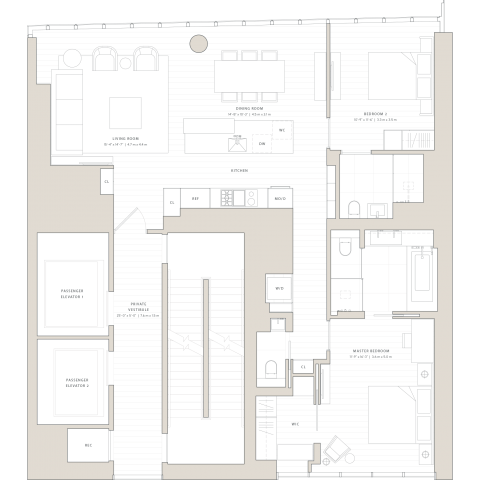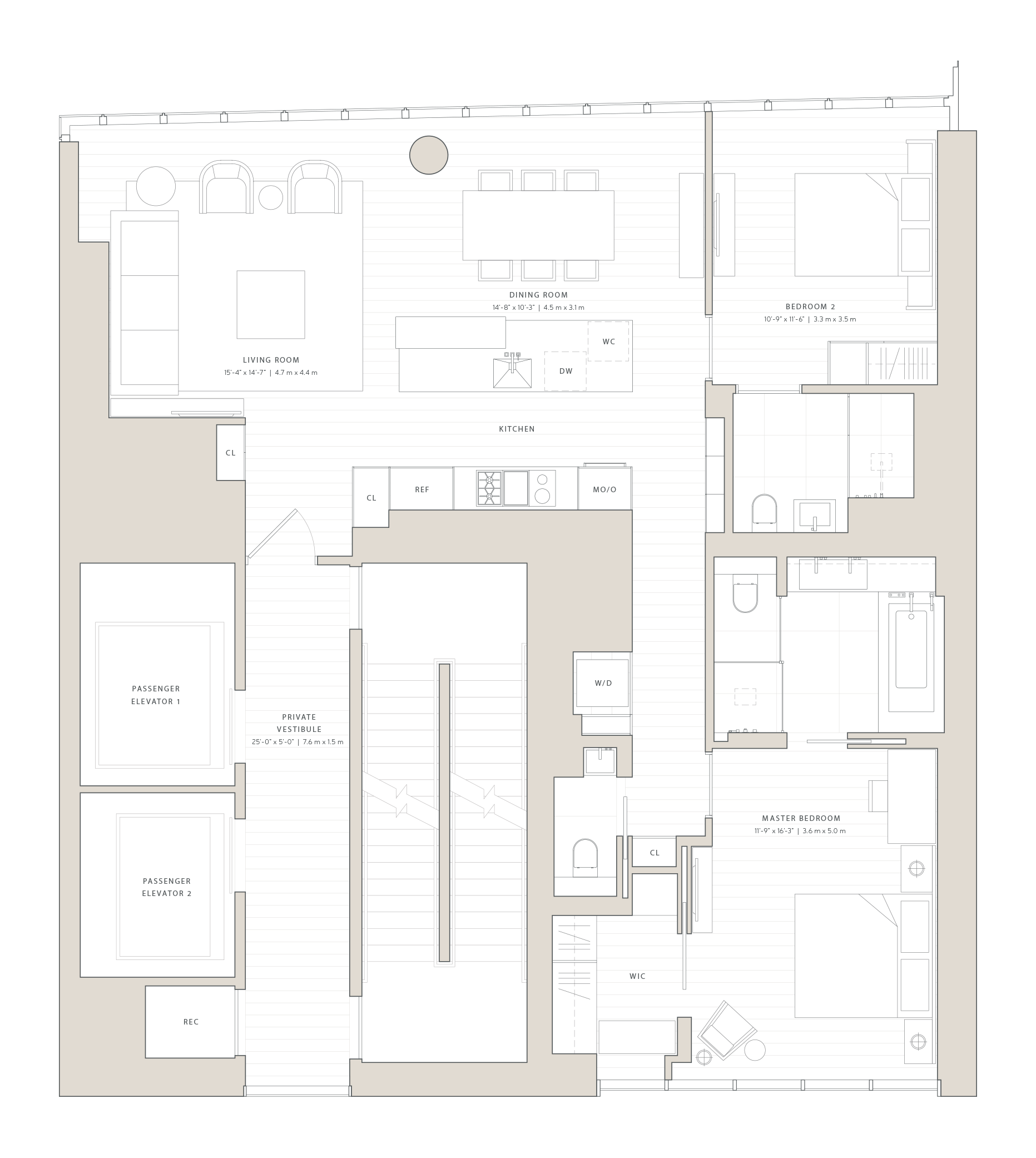 Twenty-nine individual expressions of New York Living for each residence with dramatic glass walled living spaces with ten to twenty foot ceilings offering spectacular views of New York City.
