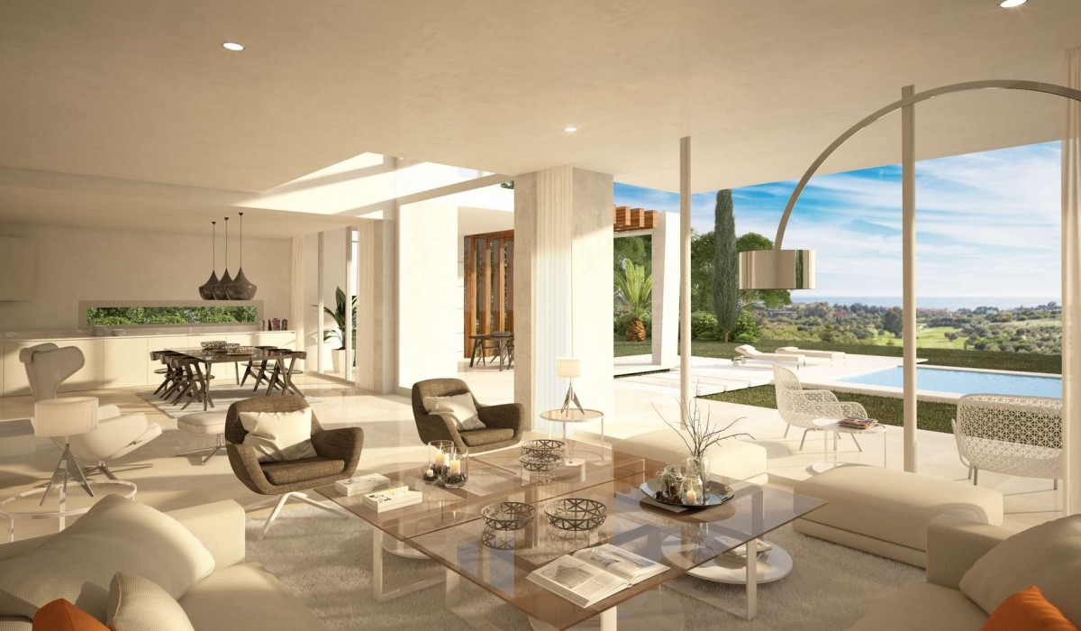 Panoramic golf and sea views. Carefully designed using top materials and qualities. Some special features include: salt water pool, solar panels, basic home automation system and many more. Within a 7-minute drive to Marbella centre. The construction will commence in October 2016 and the expected completion date is October 2018. This is an example of Villa A – plot 9
